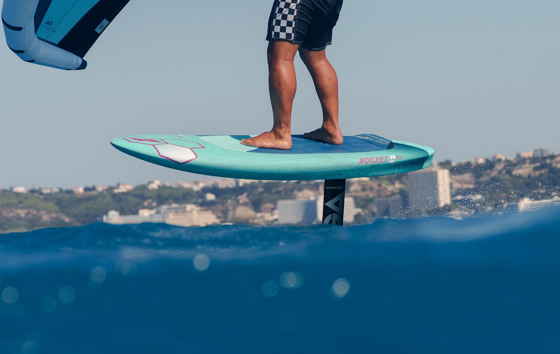 A forward foil and rider position promotes the feel of a short board with enhanced maneuverability, while maintaining early take-off and glide efficiency.